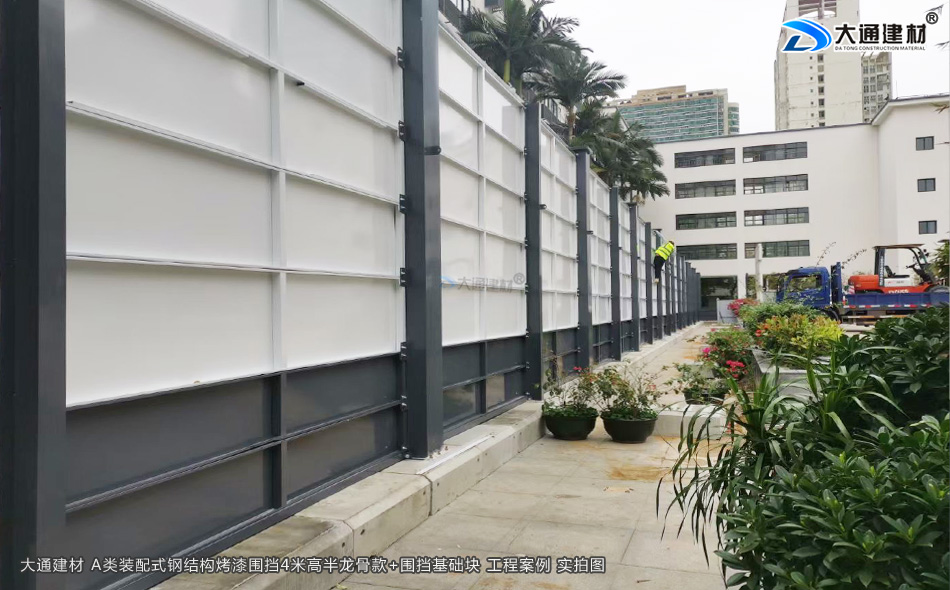 大通建材 A類裝配式鋼結構烤漆圍擋半龍骨4米高定制款+圍擋基礎塊 現場安裝