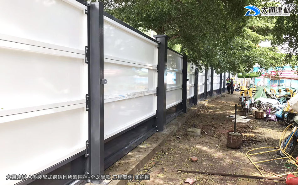 深圳市大通建材裝配式鋼圍擋全龍骨A款 采用裝配式+鋼結構+全龍骨 烤漆鋼板構造 安全穩固 抗風力強 美觀環保 經久耐用,應用于廣東省深圳市大鵬新區楊梅坑改造項目工程中,以下展示的圍擋圖片是大通建材裝配式鋼圍擋全龍骨A款在該項目部分位置的實拍圖