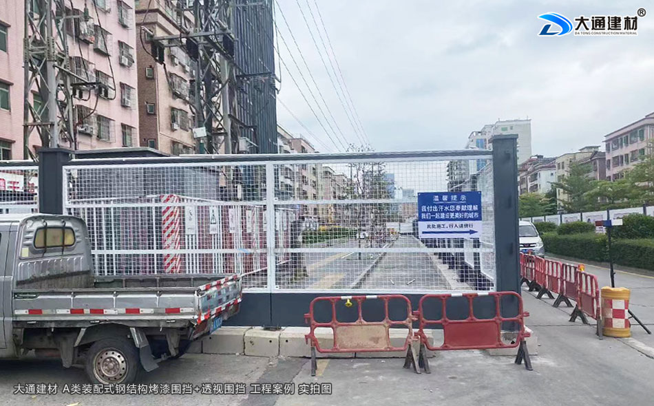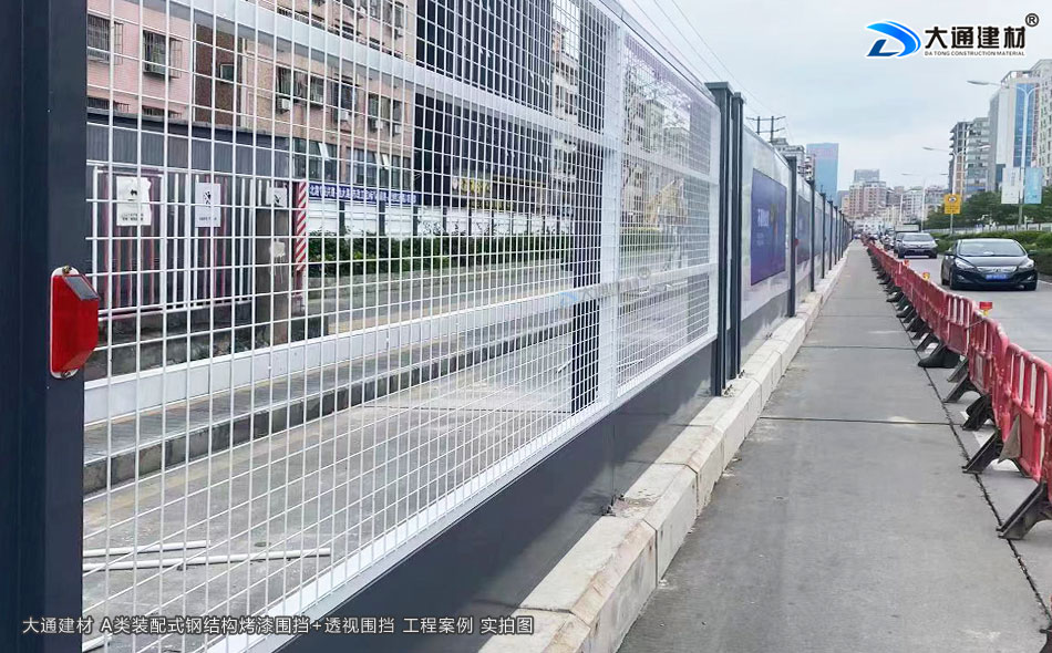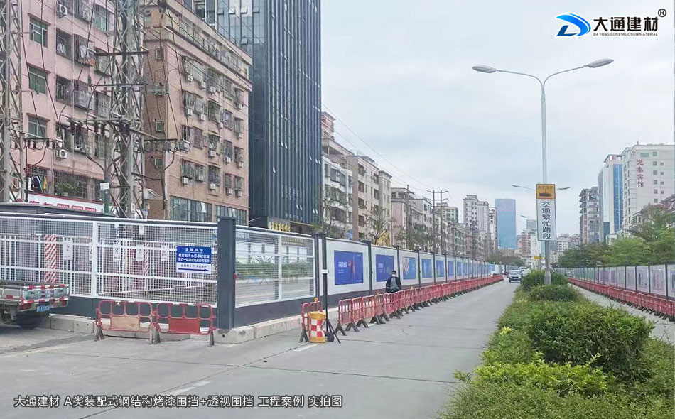大通建材 A類鋼結構烤漆圍擋+工地透視圍擋 應用于深圳光明區市政道路整改工程項目中