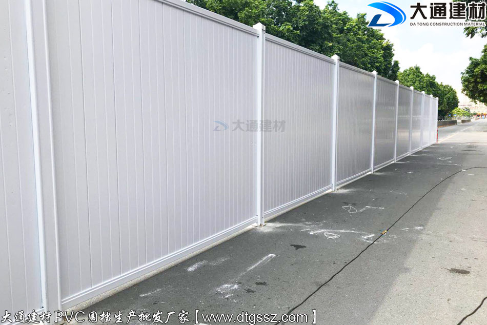 大通建材廠家批發符合佛山市政標準白色PVC圍擋,PVC圍擋生產源頭廠家,備有充足的PVC圍擋庫存,用戶下單 大通即可安排發貨,大通PVC圍擋美觀環保、安全穩固、經久耐用,在使用中有較好的防護能力,適合市政道路/地鐵工程/地產建設等選用。