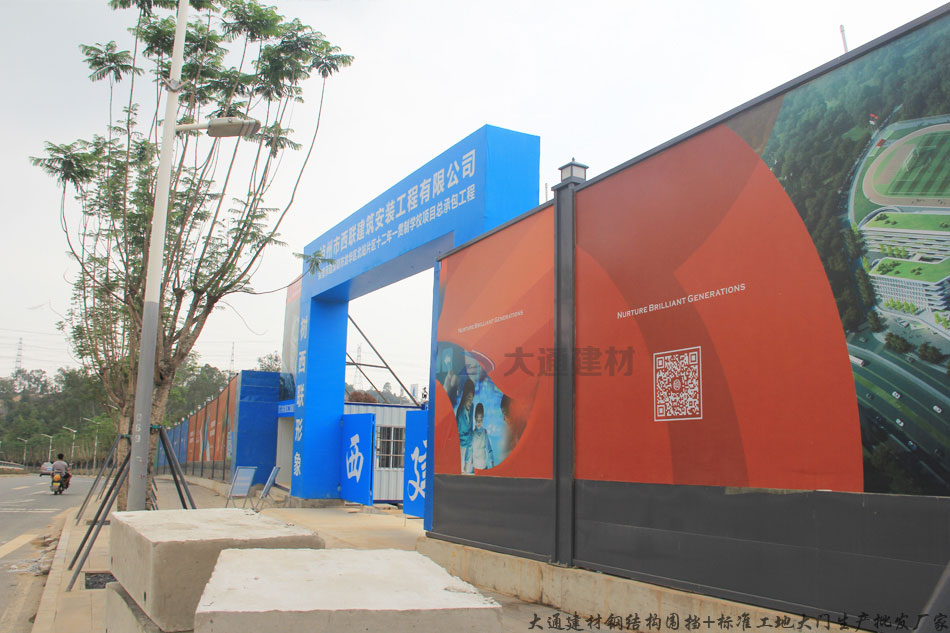 深圳龍華北站建設(shè)施工工程采用了深圳市大通建材烤漆圍擋a型+標(biāo)準(zhǔn)工地大門 起到隔離防護(hù)作用