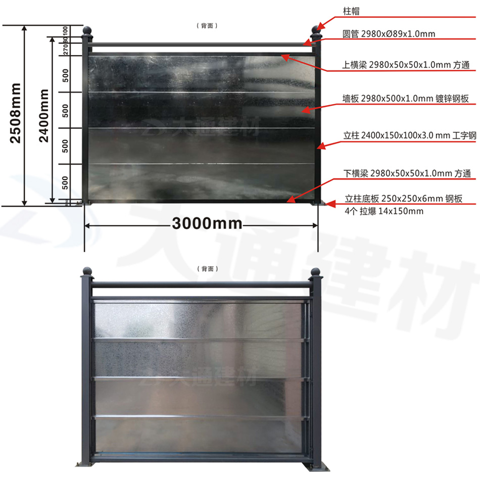 大通建材工字鋼圍擋鍍鋅2.4/2.5米高C款(每檔長為3米)規格參數表 | |||||