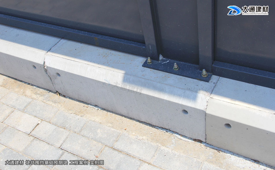 深圳市大通建材有限公司主要生產批發塊狀圍擋基礎預制塊,基礎塊將圍擋立柱固定在圍擋基礎預制塊上,更安全穩固,大通建材圍擋基礎預制塊的常規尺寸(長寬高):1000mmx600mmx300mm