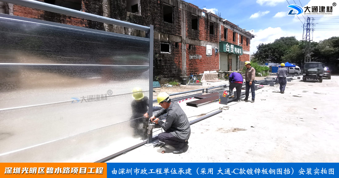 深圳市大通建材有限公司是一家集研發(fā)、生產(chǎn)、安裝 a類/b類/c類鋼圍擋、PVC圍擋、圍擋基礎(chǔ)塊、標(biāo)準(zhǔn)工地大門 于一體的綜合性生產(chǎn)廠家。大通建材是圍擋行業(yè)領(lǐng)先企業(yè),大通圍擋安全穩(wěn)固、美觀環(huán)保,適用于市政建設(shè)施工、房地產(chǎn)項(xiàng)目施工、隧道施工、地鐵項(xiàng)目施工、路橋維護(hù)施工、立面改造施工、廠房隔斷施工、管網(wǎng)改造等工程,了解更多“大通圍擋”規(guī)格與價(jià)格詳情 請(qǐng)電話 13826562448 梁先生