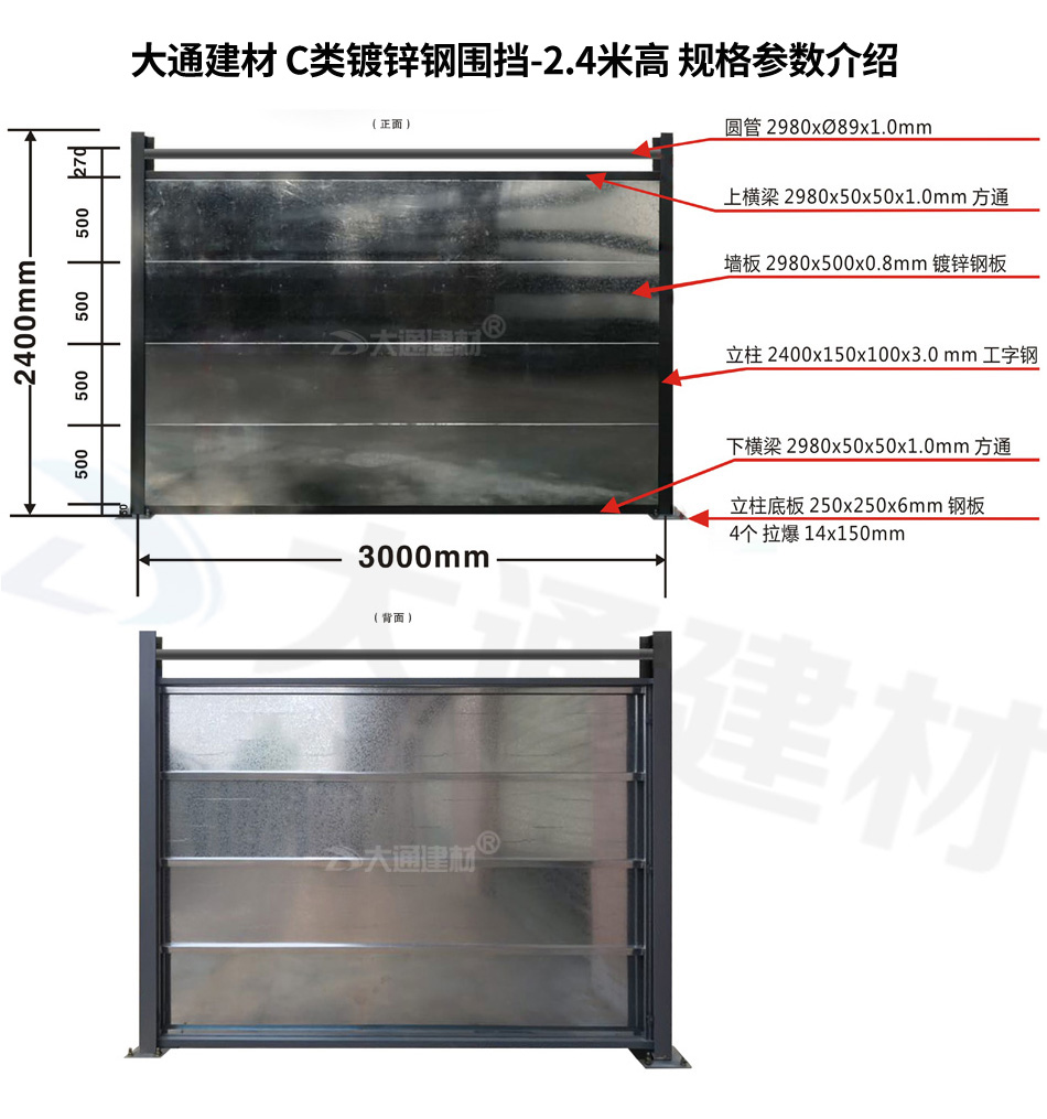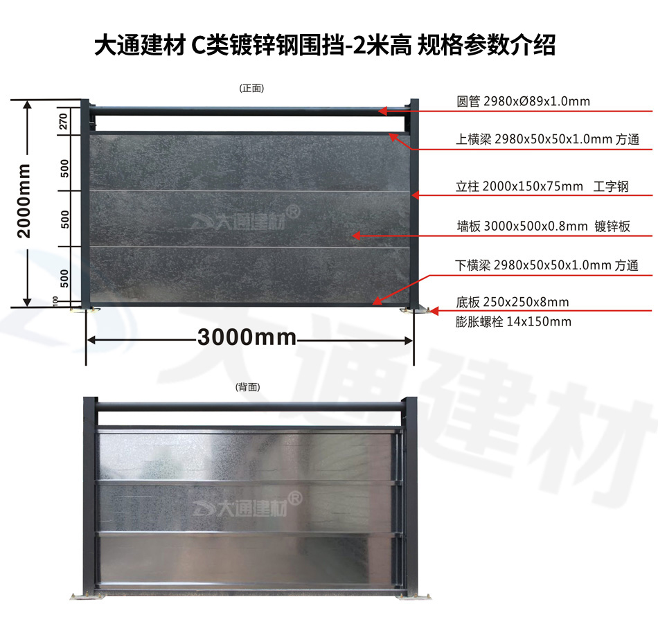 大通建材專業(yè)生產(chǎn)批發(fā)C類裝配式鋼圍擋-鍍鋅板款 有現(xiàn)貨 由廠家直接銷售 價(jià)格便宜 下單即可安裝送貨安裝 也可根據(jù)客戶需求進(jìn)行定制化生產(chǎn)
