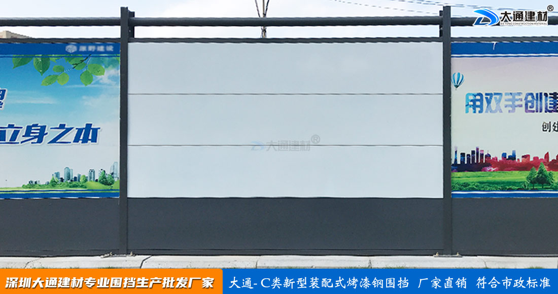 深圳市大通建材有限公司,大格局、通天下! 新型裝配式鋼結構圍擋A款/B款/C款,PVC圍擋,圍擋基礎,工地大門等產品生產廠家電話13826562448