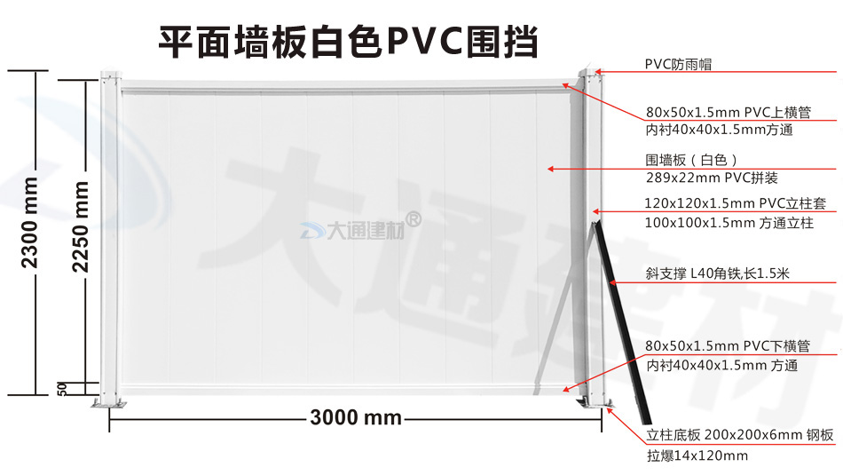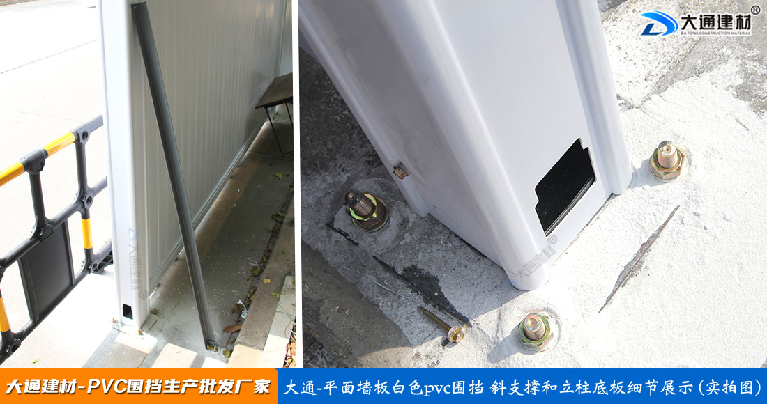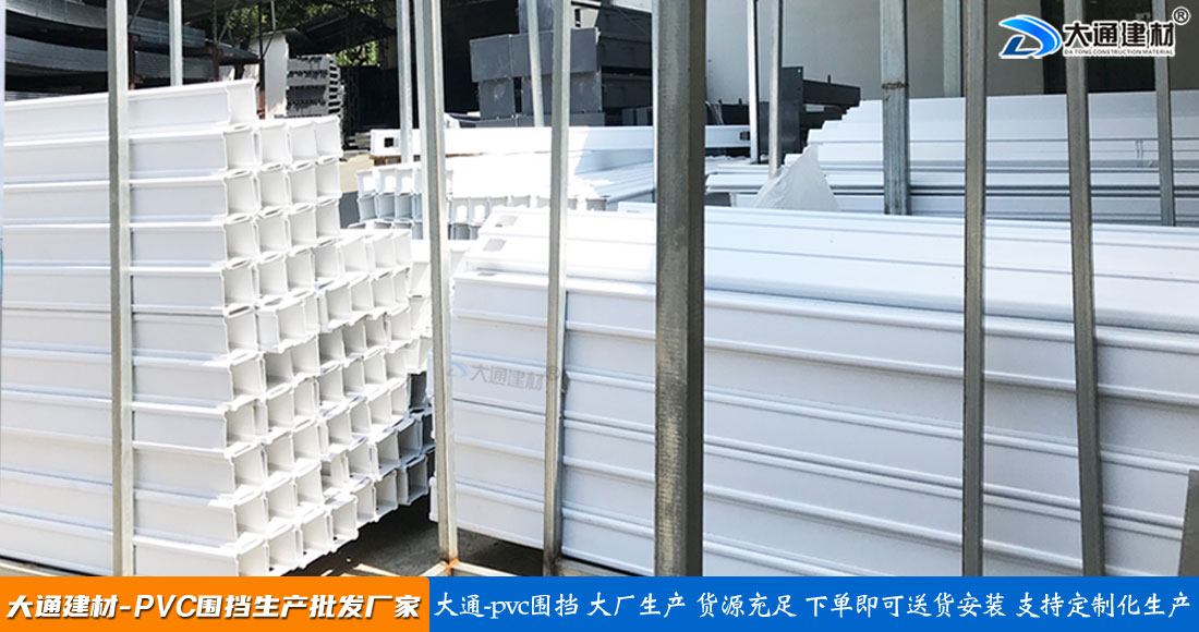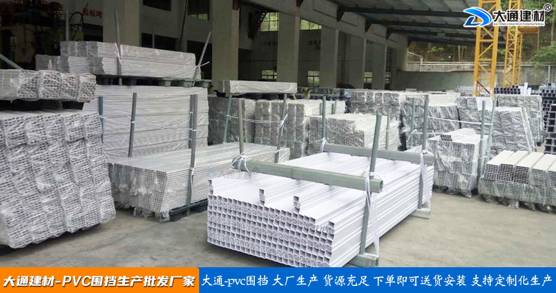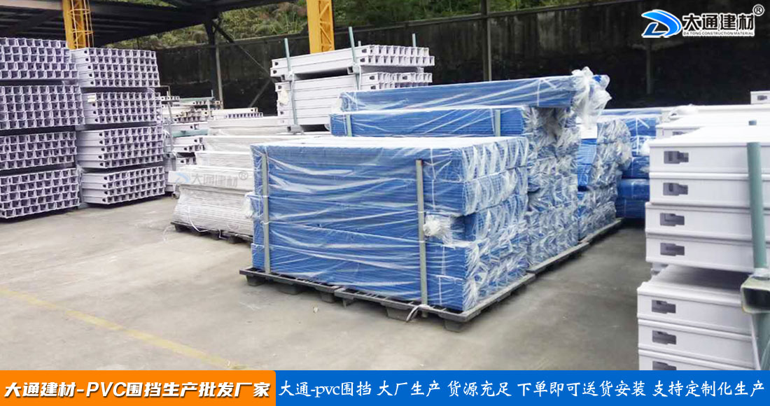 大通建材PVC圍擋立柱、橫管、擋板、斜支撐、橫撐加強筋等部件按照設計與生產(chǎn)標準,尺寸與工藝實現(xiàn)標準化生產(chǎn)和標準化拼接安裝,從而達到高效率生產(chǎn)、快速運輸和拼接式安裝,大大降低了圍擋的采購成本。